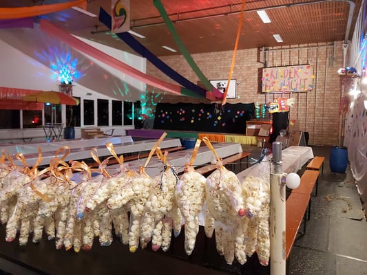 Speziell für die kleinen Gäste gib es einen Kinderdrink, Popcorn-Hände, Hot-Dogs und Süssigkeiten-Spiesse. Daneben gibt es auch einen Grill mit Wurst und Brot