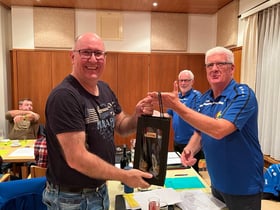 Auf die Hauptversammlung hat Thomas Wohlwend nach 8 Jahren als Revisor seinen Rücktritt eingereicht. Peter Stüdli überreichte ihm als Dank 2 Flaschen Wein.